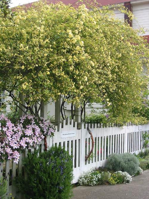 Corylopsis in front of fence